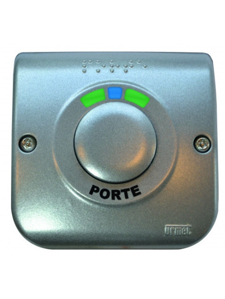 Plaque acier inoxydable 84,5 x 39,5 mm. Pictogrammes Porte + Main + braille. Encastré / Pour BP ou capteur IR D 19 mm.