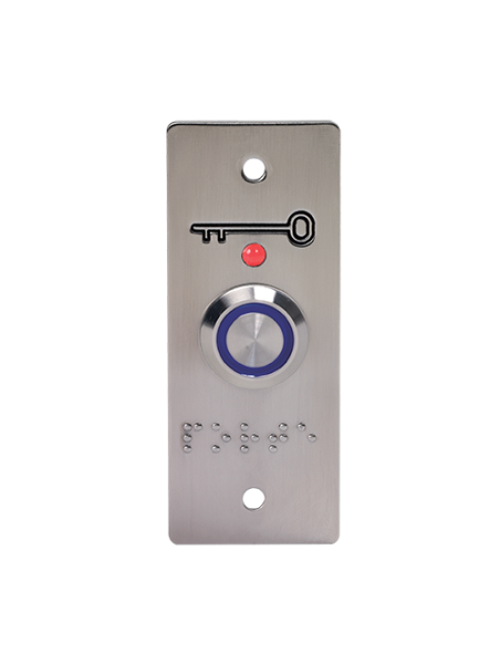 Bouton poussoir adapté aux normes exigées pour les personnes à mobilité réduite avec son inscription en braille, une LED tricolore et un Buzzer intégré, afin d'être au plus près des besoins de chaque utilisateur, pour avoir une information claire quant à l'état d'ouverture ou de fermeture de la porte. Ce bouton est accompagné de sa plaque en inox de faible encombrement pour une installation discrète ou dans des lieux étroits et d'un bouton avec un cercle lumineux bleu, pour une meilleure visibilité dans l'obscurité mais aussi pour des personnes malvoyantes. Il est aussi doté d'une temporisation sur le déverrouillage, variable entre 0,5 et 15 secondes, à régler à sa convenance. De plus, le Buzzer est désactivable si le son n'est pas d'utilité. Ce bouton s'adapte à tous les types d'accès.
