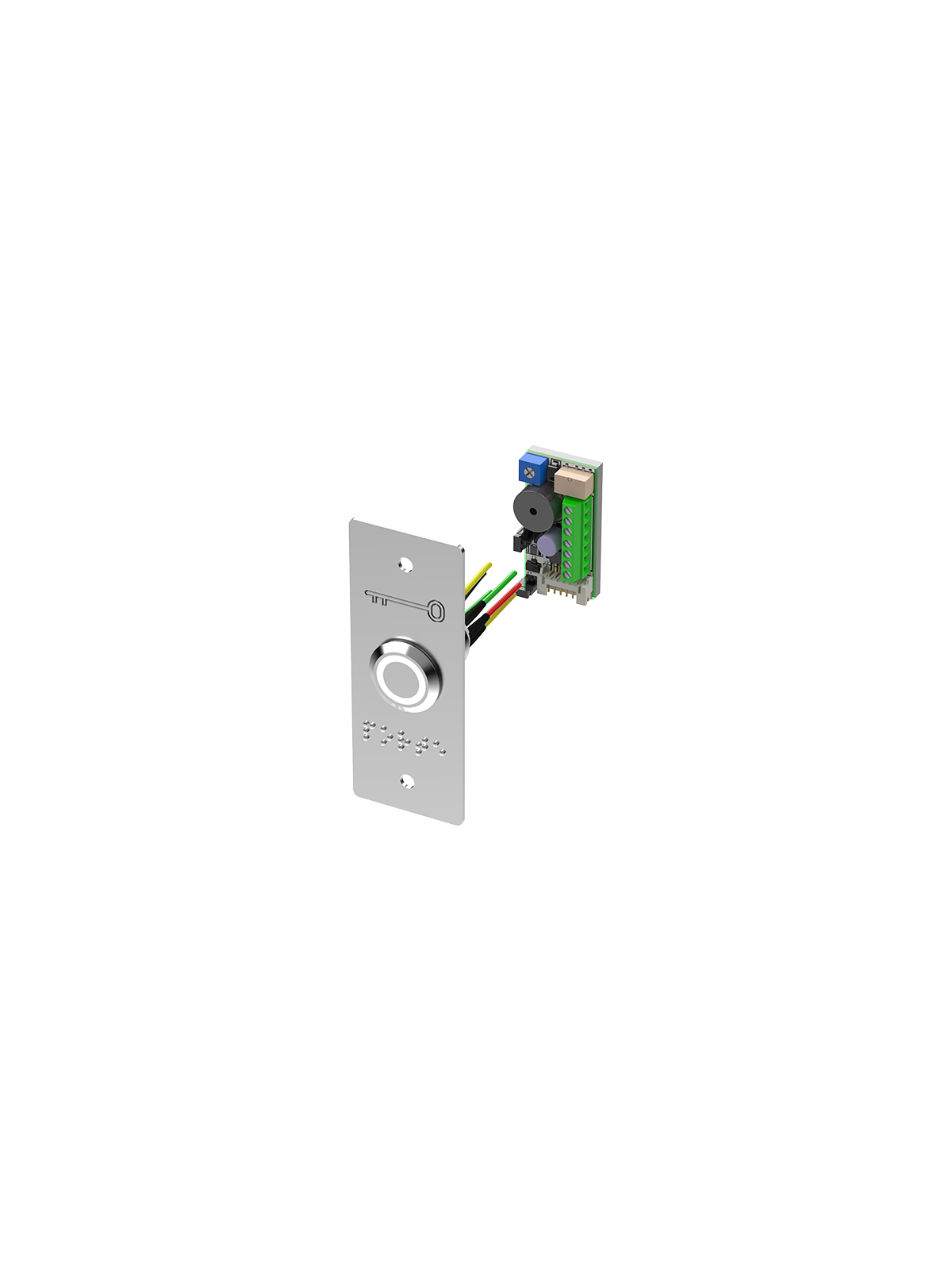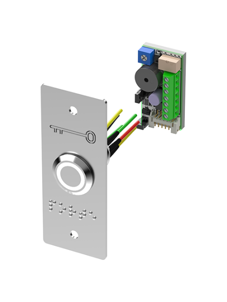 Bouton poussoir inox avec plaque étroite et braille PORTE LED bicolore V/B Buzzer.