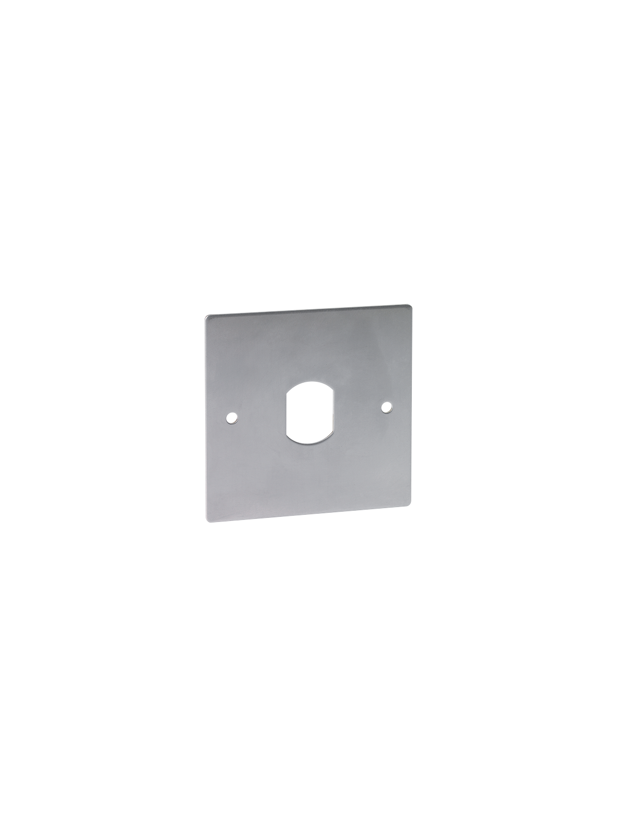 Plaque inox 80 x 80 mm avec empreinte pour contact PTT ou lecteur Vigik format T25.
