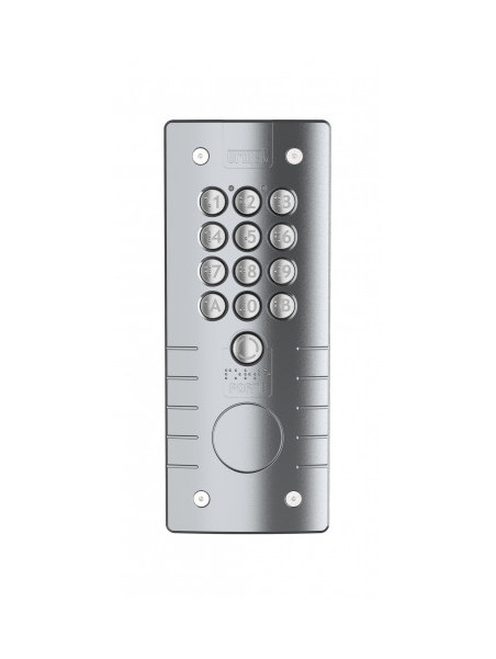 Portacode ANDY - Zamak argent encastrable - 2 relais - Touches rétro-éclairées 16 mm braille - Synthèse vocale - Leds - Trou bouchonné