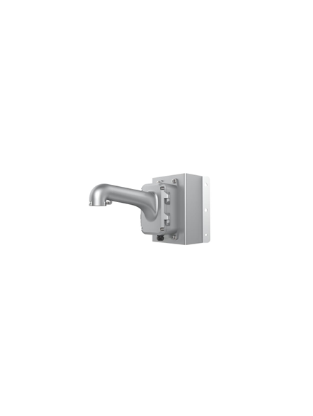 Corner mount with the junction box - Aluminum alloy and steel with surface spray treatment - Bottom outlet, and back outlet - The hook for safety rope facilitates speed domes installation