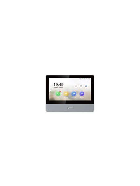 Two-wire version: 7“ Touch-Screen Indoor Station - 7-inch Colorful TFT LCD, display resolution: 1024 * 600 - 10/100Mbps Ethernet, Wi-Fi 802.11b/g/n - Two -wire interface. - TF card, max 32G; 32MB Flash - 8-ch alarm input, 2xalarm output, 1x485