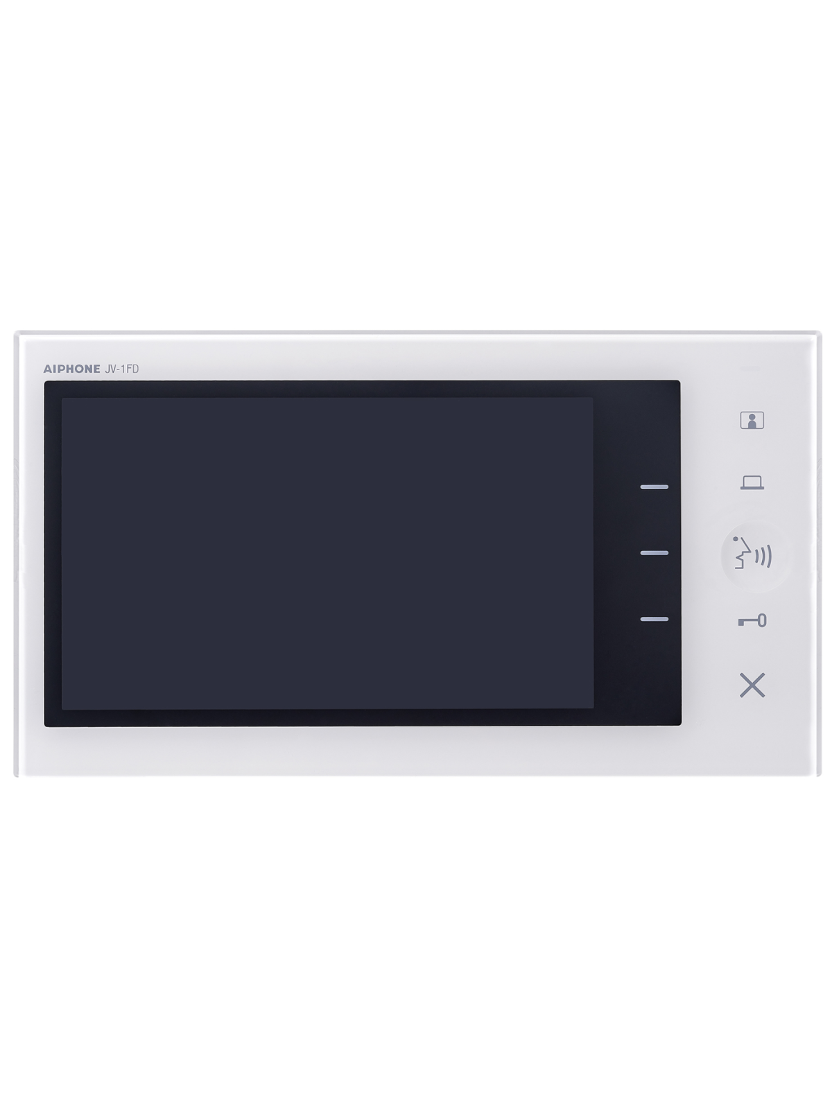 Moniteur secondaire avec écran 7" - Technologie 2 fils intégral - Touches sensitives - ABS blanc - Faible épaisseur 21 mm - Réréglages du contraste, de la luminosité , du volume de sonnerie et d'écoute pour kit JV