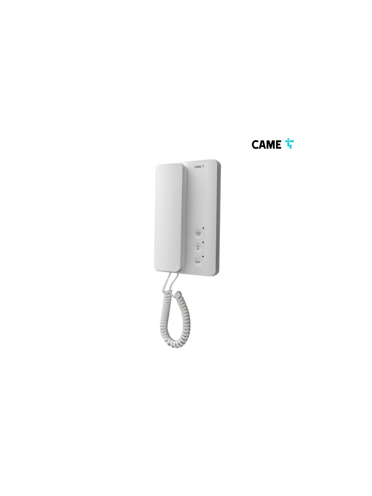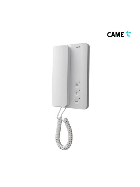 Téléphone LOFT avec bras de combiné avec aimant pour faciliter l'accrochage. Bouton poussoir pour ouvrir la porte. Installation VDS (bus 3 fils).