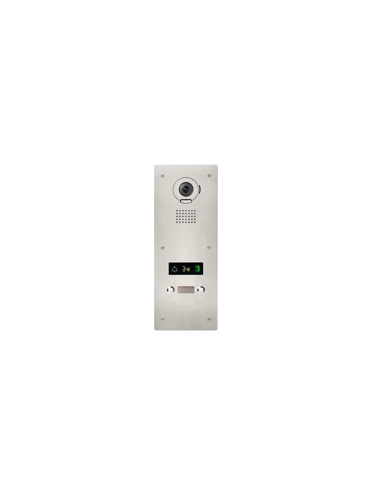 Platine vidéo inox encastrée 2 BP avec synthèse vocale, pictogrammes lumineux et boucle magnétique pour gamme JP.