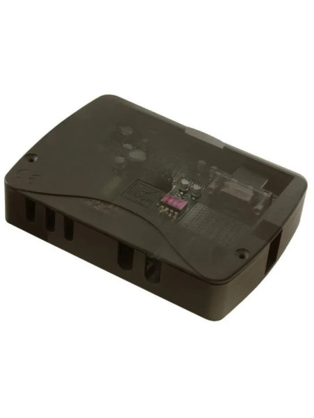 Télécommande radio 2 canaux. HF 868 MHz Insert inox numéro gravé Boîtier noir. Touches grises.